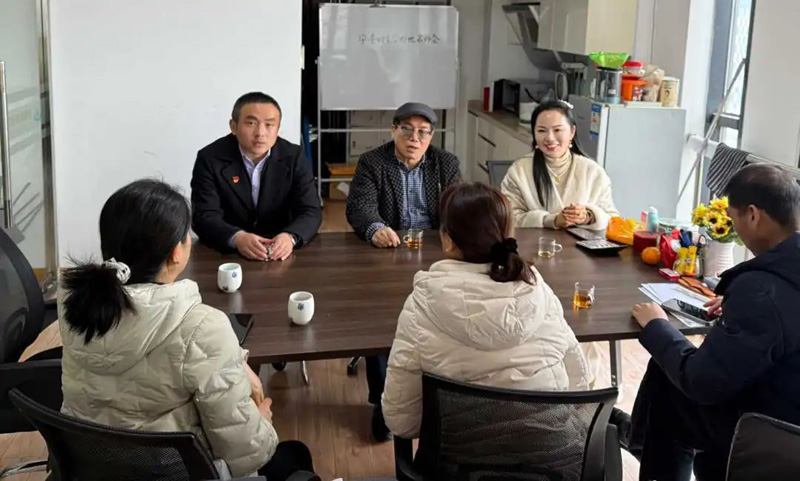 在常州市久久灵会计服务有限公司,傅云法书记首先向朱亚媛会长表示新春节日的问候,并祝久久灵在新的一年里生意兴隆。朱会长热情接待了走访团队。座谈会上,朱会长就深化税务部门合作、推广代博会经验等议题提出建设性意见。她强调,在新的一年里,协会要充分发挥桥梁纽带作用,帮助会员单位提升专业服务水平。傅书记对朱会长长期以来支持协会党支部工作表示感谢,并充分肯定其在推动党支部建设方面的重要贡献。他指出,久久灵公司作为会长单位,在规范经营、创新发展等方面为行业树立了标杆。